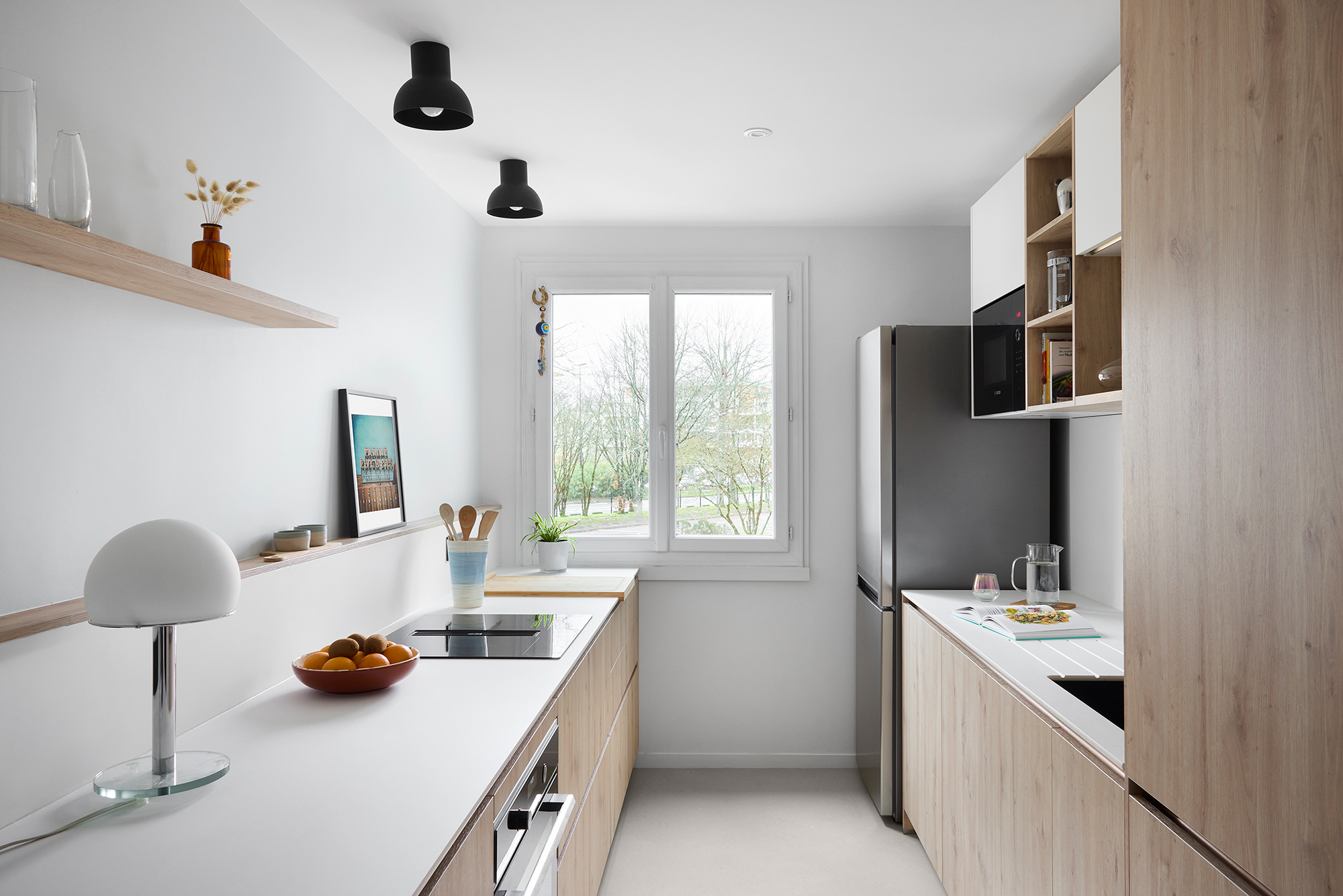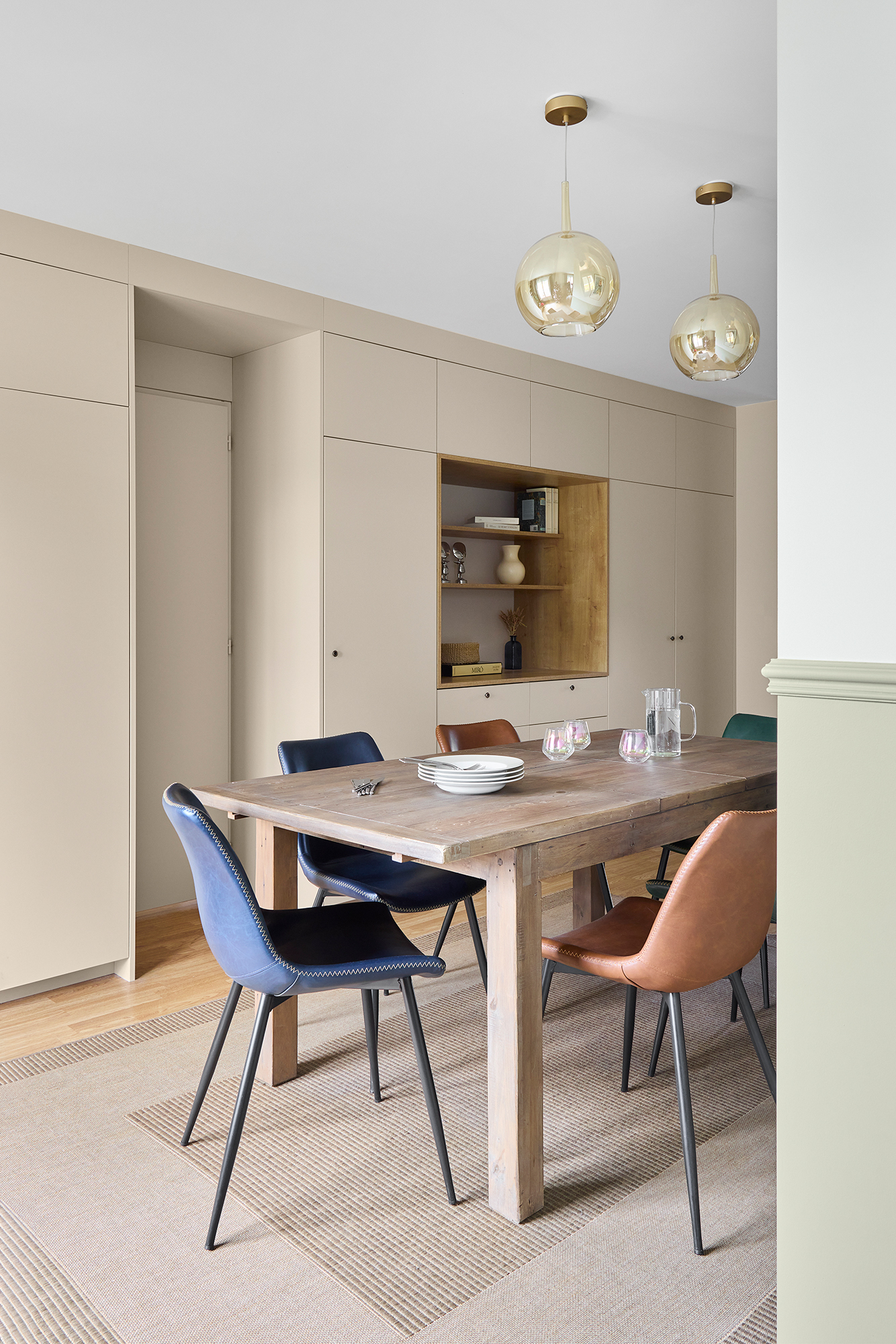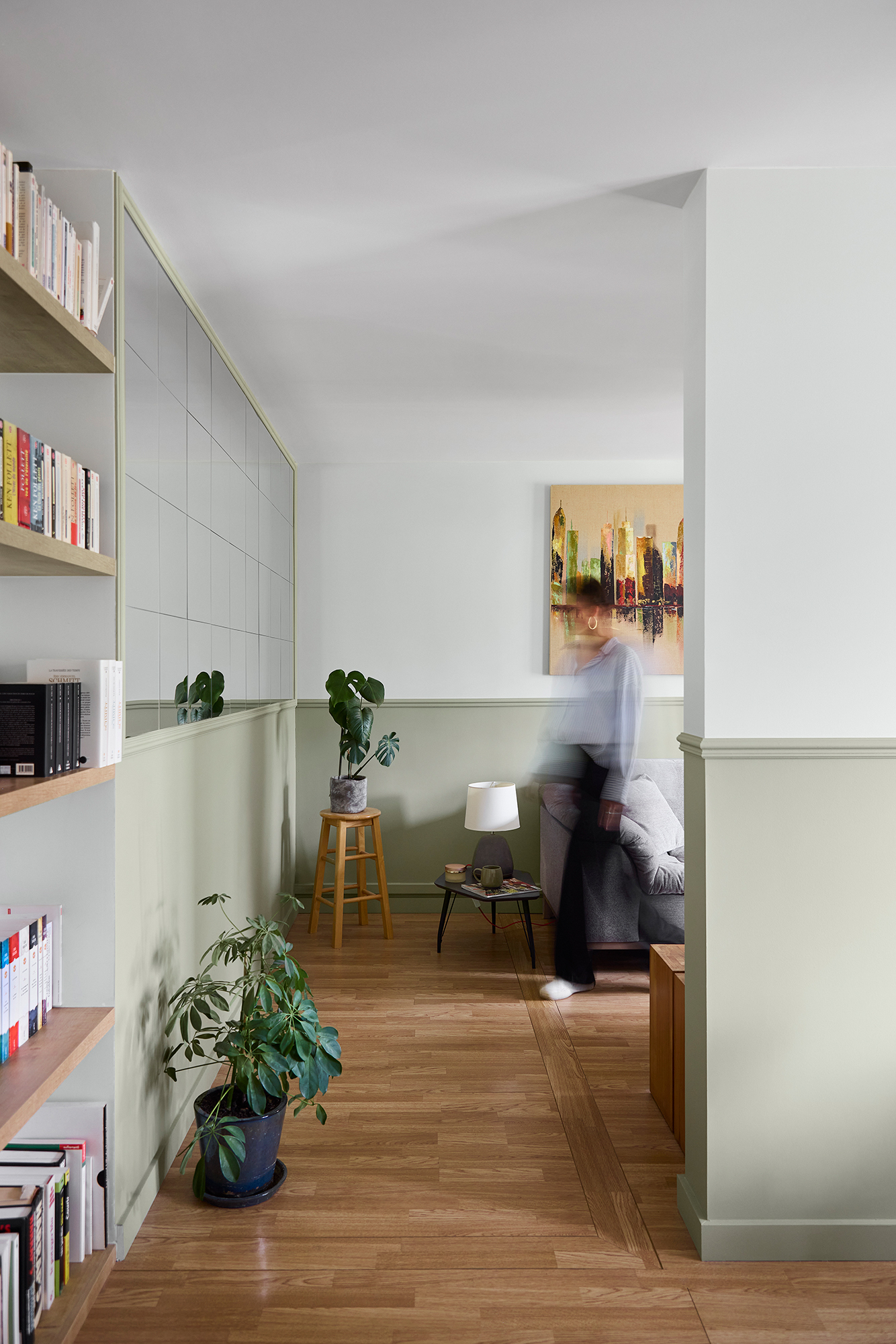 Cet appartement des années 70 a fait l’objet d’une rénovation complète mêlant couleurs profondes, bois chaleureux et touches contemporaines. Les espaces ont été repensés pour gagner en fluidité, luminosité et confort, dans une atmosphère à la fois graphique, conviviale et intemporelle.